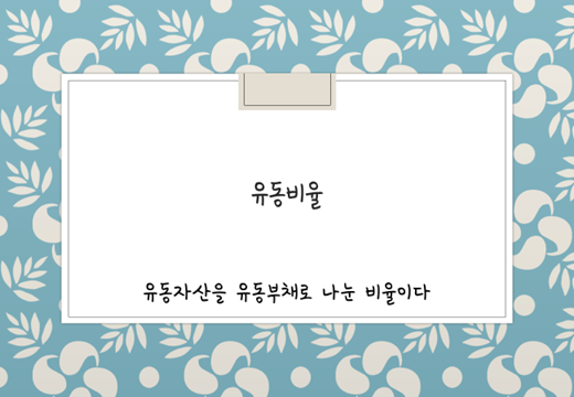 유동비율(current ratio)은 단기채무에 충당할 수 있는 유동자산이 얼마나 되는가를 나타내는 비율로서 여신취급시 수신자의 지급능력을 판단하는 대표적인 지표로 활용되고 있다.