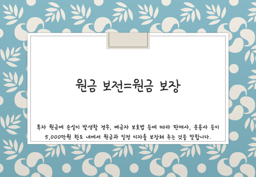 투자자들이 금융 상품(펀드)에 가입할 때 예상 수익률과 함께 가장 많은 관심을 갖는 것이 원금 보장 여부입니다. 그럼에도 원금 보장에 대해 가장 많이 헷갈려 합니다. 이유는 금융기관들이 이와 관련해 너무 비슷한 단어를 사용하기 때문입니다.