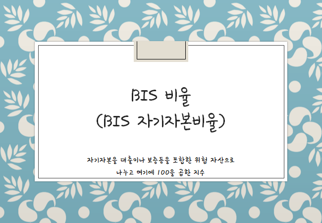 국제결제은행 (BIS) 이 은행의 경영 건전성을 체크하는 지표로 제시한 자기자본비율을 뜻합니다. 은행의 자기자본을 대출이나 유가증권 투자 등 자산 가운데 떼일 위험이 있는 자산 (위험가중자산) 으로 나눠 계산합니다. 자기자본이 크거나 떼일 위험이 있는 자산이 적을수록 이 비율이 커지며, 그만큼 은행 경영이 건전하다는 것을 뜻합니다. BIS는 이 비율이 8%를 넘기도록 권고하고 있습니다