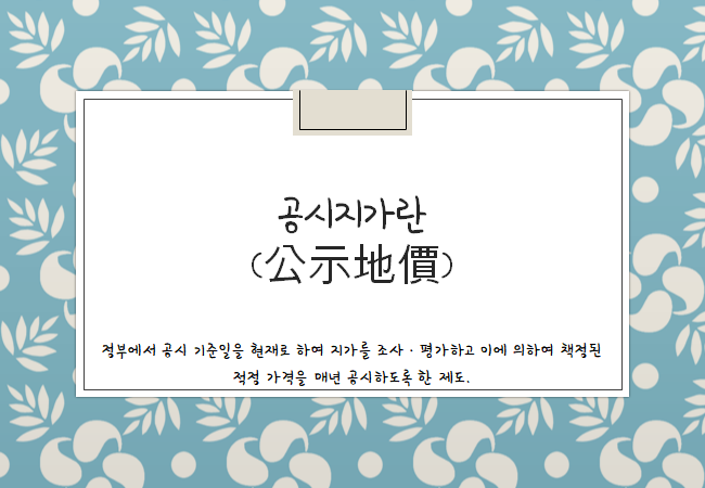 하지만 모든 땅이 거래되는 것이 아니며 그렇다고 거래되는 시점마다 그때그때 땅값을 매긴다는 것은 현실적으로 불가능 합니다. 그래서 생각해 낸 것이 '공시지가' 즉, '국가가 정한 공식적인 표준 땅값'인 셈입니다. 이러한 '공지지가'를 정하기 위해 정부(건설교통부)는 원칙적으로 땅값을 매기는 전문가인 감정평가사를 동원해 전국의 땅값을 모두 조사하여야 하지만 그러려면 돈과 시간이 너무 들게 됩니다.