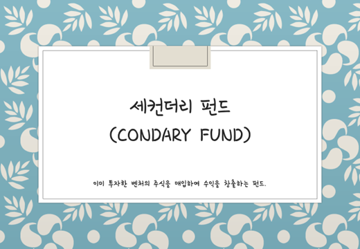 세컨더리펀드(Secondary Fund·유동화펀드)는 벤처캐피털들이 투자한 기업중 펀드만기(보통 5∼7년) 안에 회수하지 못한 투자지분(구주)을 인수해 현금화(유동성 확보)하도록 도와주는 역할을 합니다.