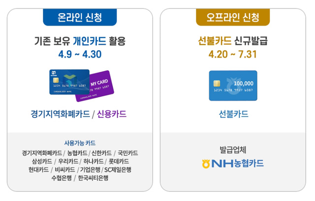 ※ 경기지역화폐카드 미사용 시군(김포, 시흥, 성남)은 신용카드만 신청 가능