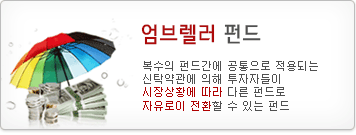 보통 펀드는 한번 가입하면 만기시까지 그대로 가져가야 하지만 엄브렐러펀드는 시장상황에 따라 다른 펀드로 언제든 전환이 가능하다.