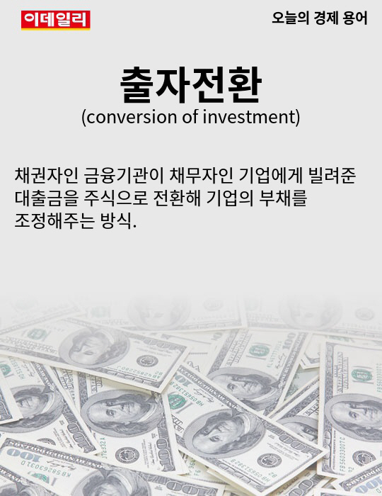 기업이 채권 금융기관의 대출금을 주식으로 전환함으로써 과다한 부채로 인한 문제를 덜어주어, 금융기관의 채권 부실화를 막는 것을 출자전환이라 한다. 출자전환은 금융기관이 보유하고 있는 채권을 당해 기업의 주식으로 직접 전환하는 직접 출자전환 방식과, 투자자가 금융기관 매출 채권을 할인 매입 후 당해 기업 주식과 상계하는 간접 출자전환 방식 등 두 가지 방식으로 나눌 수 있다.
